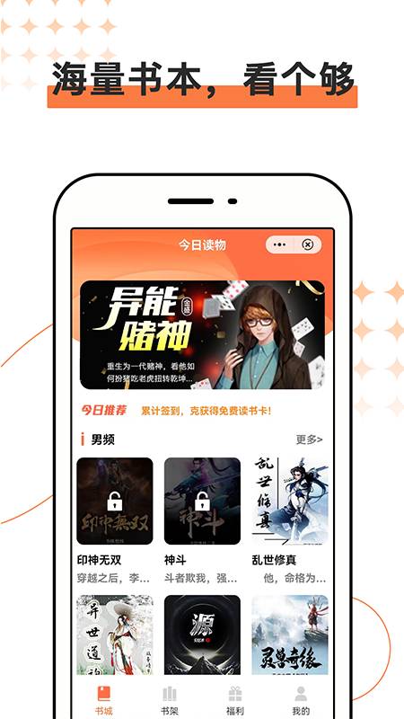 《今日读物分享》是一款支持免费阅读小说的快应用产品,用户全程不需要下载产品,点击小说即刻阅读,看完即走,全凭用户喜欢。产品内部”书城“页是小说爱好者的搜书首选,男频、女频,种类丰富,喜好书籍随时可加入书架,方便下次阅读。总之《今日读物分享》不存在全书购买,也不会向用户收取会员费等,这样方便又安全的小说产品值得一看!